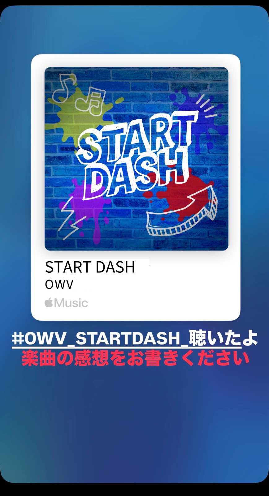 1.対象サイト(Apple Music、Spotify、Amazon Music、LINE MUSIC、AWA、KKBOX、Rakuten Music、YouTube Music、dヒッツ)でOWV「START DASH」を再生。
